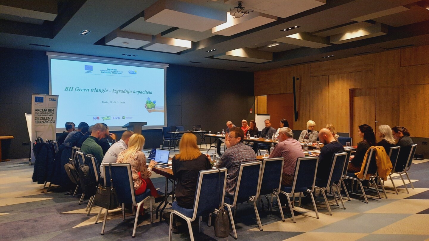 Nakon uspješno provedenog procesa objave javnog poziva u okviru projekta “BH Green Triangle – BiH Zeleni trokut”, te prijave, evaluacije i odabira najuspješnijih prijedloga projekata, u periodu 27. i 28.01.2026. godine u Tarčinu je održan trening Izgradnje kapaciteta za predstavnike 15 organizacija civilnog društva (OCD) kojima su dodijeljeni EU grantovi za realizaciju projekata.