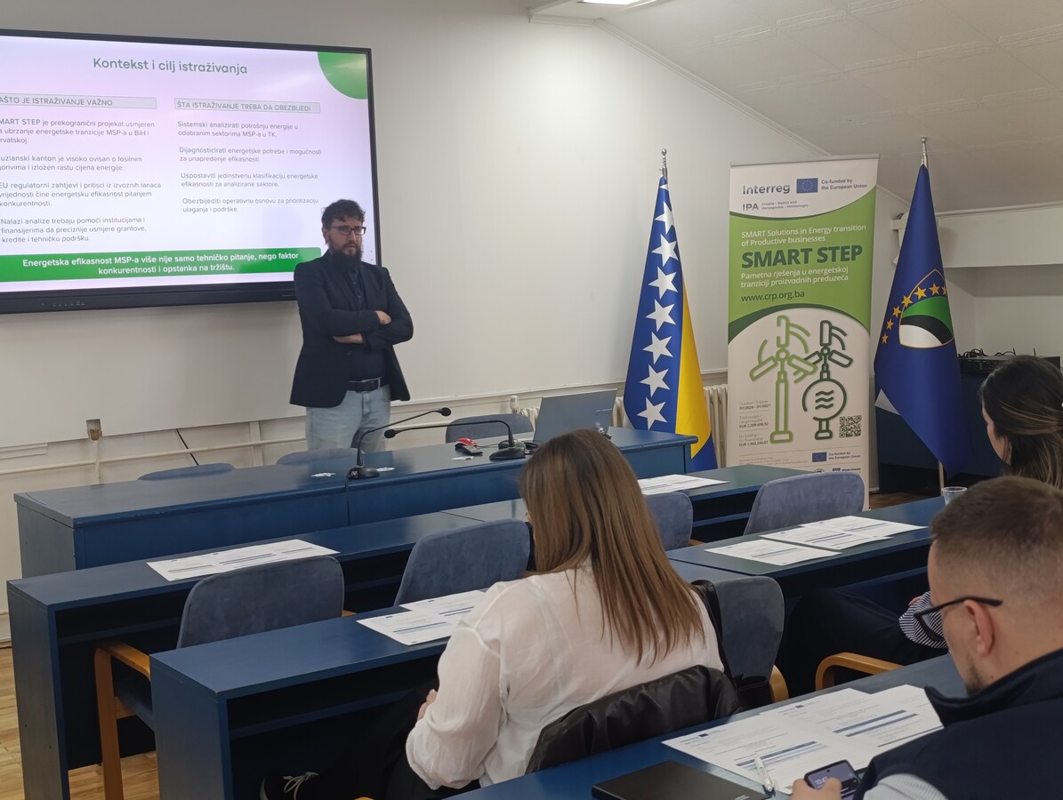 Prezentacija je održana u okviru projekta „SMART STEP – Pametna rješenja u energetskoj tranziciji proizvodnih preduzeća“, koji se realizuje kroz Interreg IPA prekogranični program Hrvatska – Bosna i Hercegovina – Crna Gora 2021–2027. Projekat implementiraju Centar za razvoj i podršku (CRP) Tuzla, Tuzlanski kanton, Brodsko-posavska županija i Sveučilište u Slavonskom Brodu.